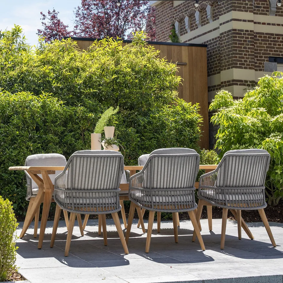 Tuinsets van 4 Seasons Outdoor zijn verkrijgbaar in allerlei varianten. Zo kun je altijd je eigen dining set samenstellen: Kies uit de vele tuinstoelen het model dat het best aansluit bij je wensen. Dan kun je daar ook naar wens zelf een tuintafel bij kiezen, zoals een schitterende lange tafel van teakhout of juist een kleinere aluminium tafel voor je balkon. We geven je ook de mogelijkheid zelf een eettafel samen te stellen. Door de keuze uit diverse tafelonderstellen en tafelbladen kun je de combinatie maken die jij het mooiste vindt.